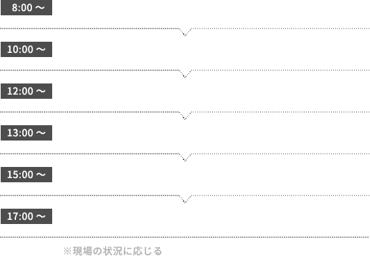 未経験でも大丈夫。軽作業や現場の片付けなど、簡単な作業をしながら少しずつ現場に慣れていきましょう!初めは暑さ・寒さが大変かもしれませんが、続けるうちに徐々に体力が付いてきますよ!