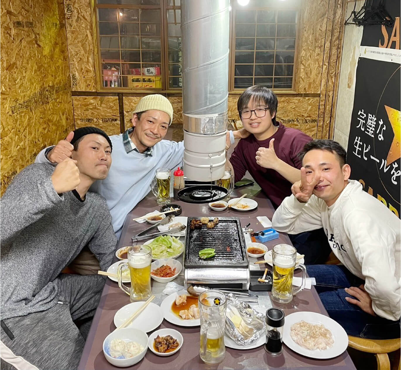 業務外では、みんなの予定が合えば定期的にご飯会開いたり、思い付きでBBQやったりもしますよ!仲の良い職場だと思います!
